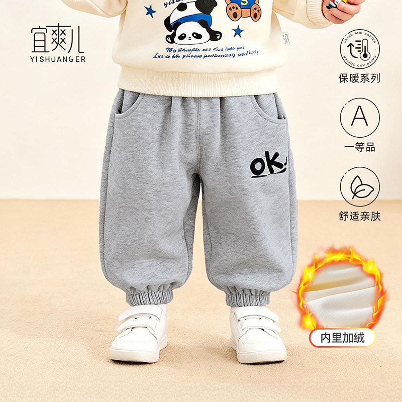 2025款男童裤子宝宝卫裤加绒加厚男孩运动裤秋冬季儿童春装休闲裤