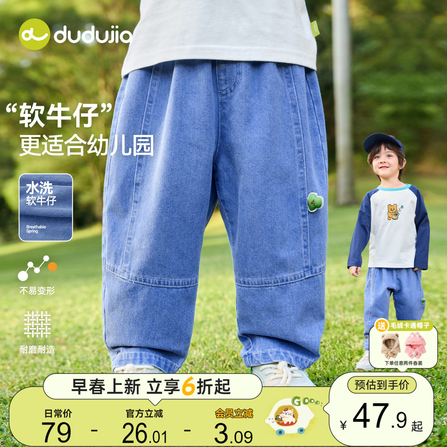 【软牛仔】dudujia儿童牛仔裤春宝宝裤子春秋男童长裤春装休闲裤