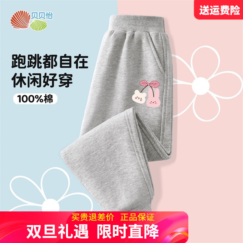 贝贝怡童装儿童纯棉运动裤女童卫裤中小童针织卫裤2026春装休闲裤