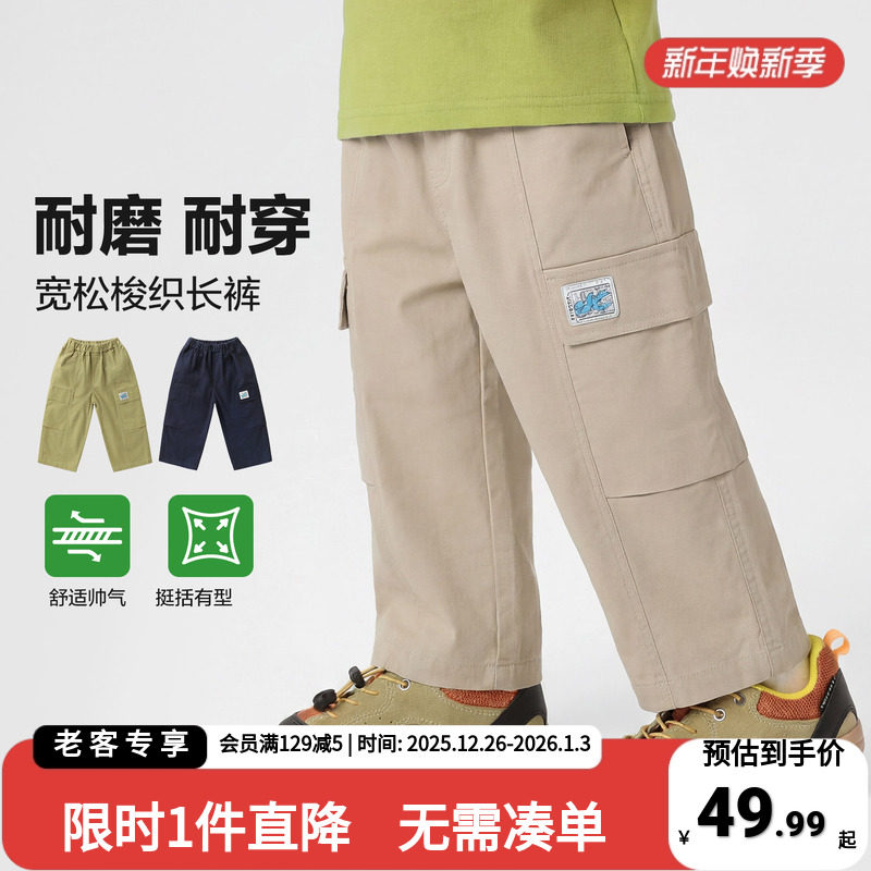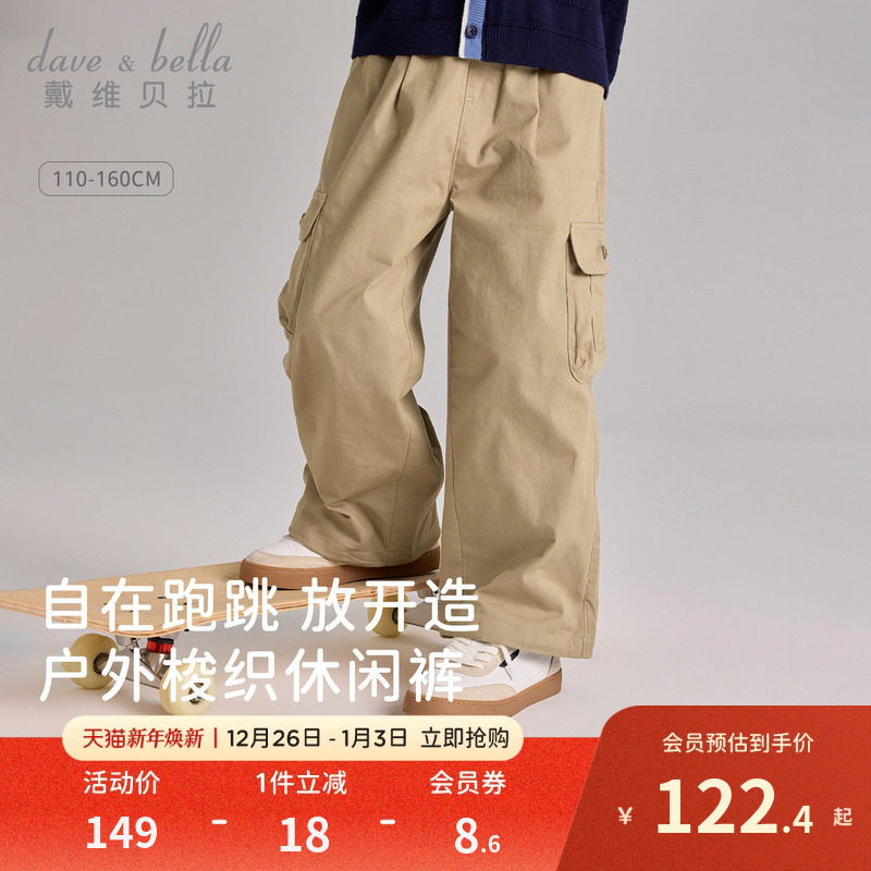戴维贝拉儿童裤子男童工装裤2026新款纯棉长裤中大童春装休闲裤