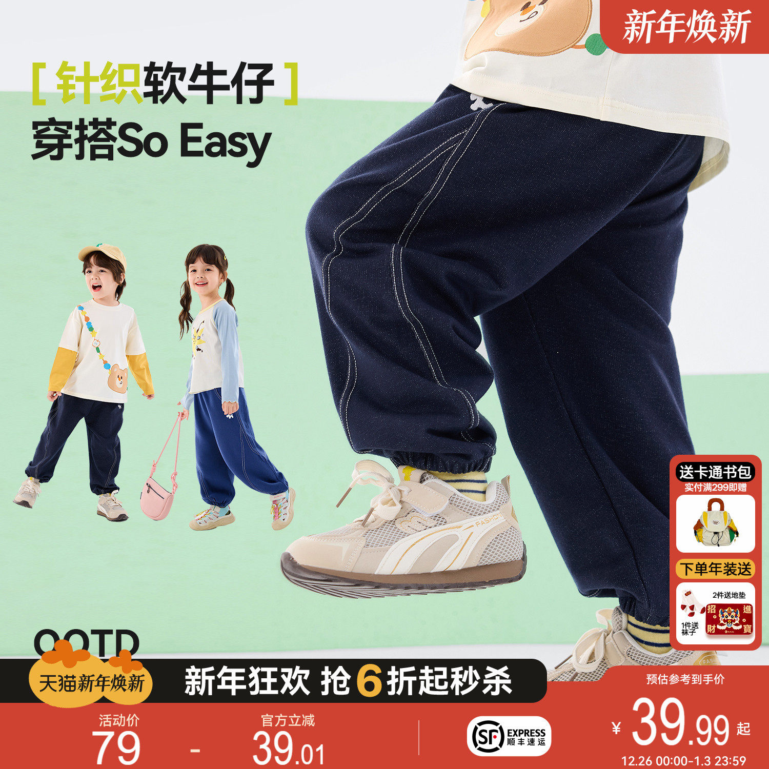戴维贝拉儿童裤子2026新款男童运动裤女童长裤大童洋气春装休闲裤