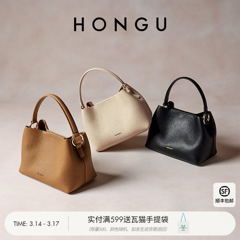 红谷包包女新款质感真皮时尚通勤单肩手提斜挎包牛皮水桶包女士包