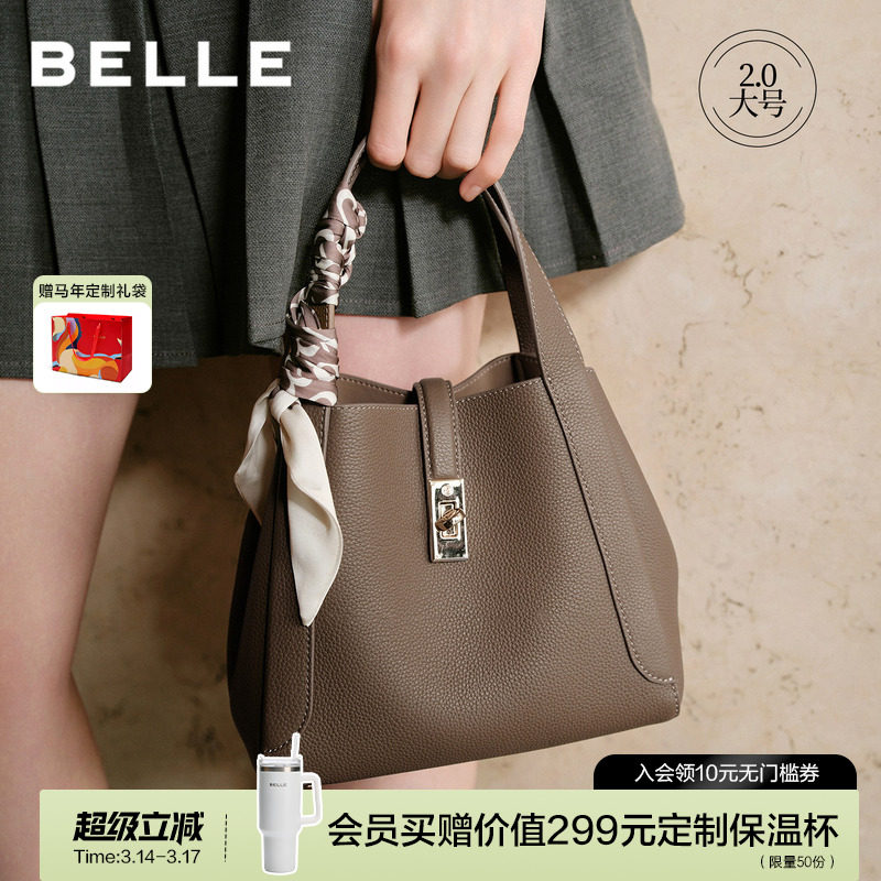 百丽包包女真皮通勤菜篮子妈妈礼物商场款手提斜跨水桶包BL828BX5