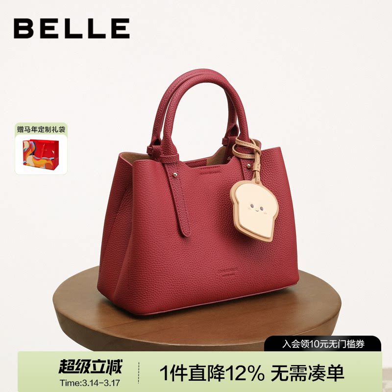 百丽女包新款吐司包质感真皮大容量斜挎手提包红色婚包百搭X7162