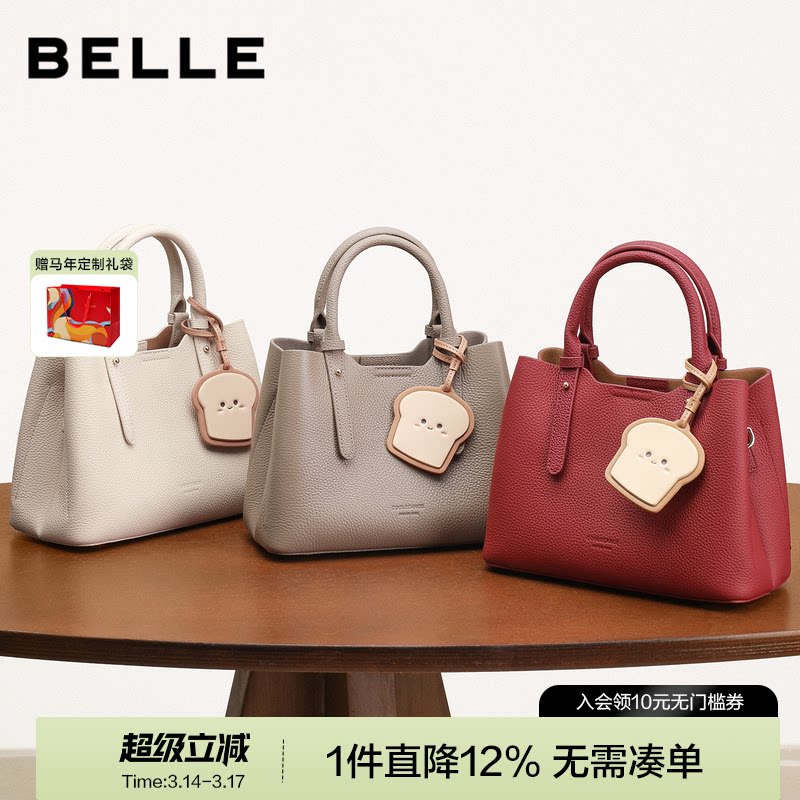 百丽女包新款婚包真皮包吐司系列大容量托特包斜挎手提包X7162CX4