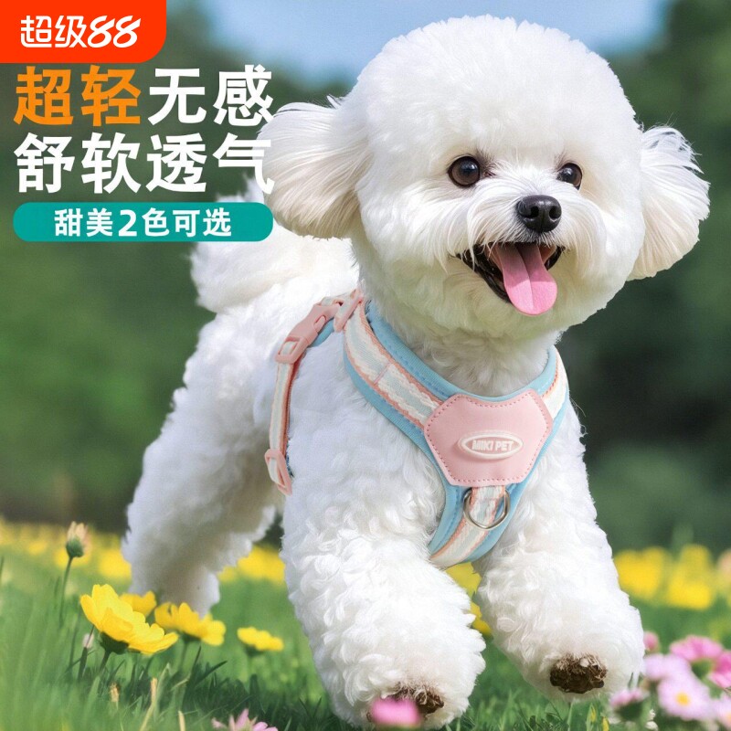 狗狗牵引绳小型犬 胸背带遛狗绳背心式泰迪狗绳比熊遛狗绳子狗链