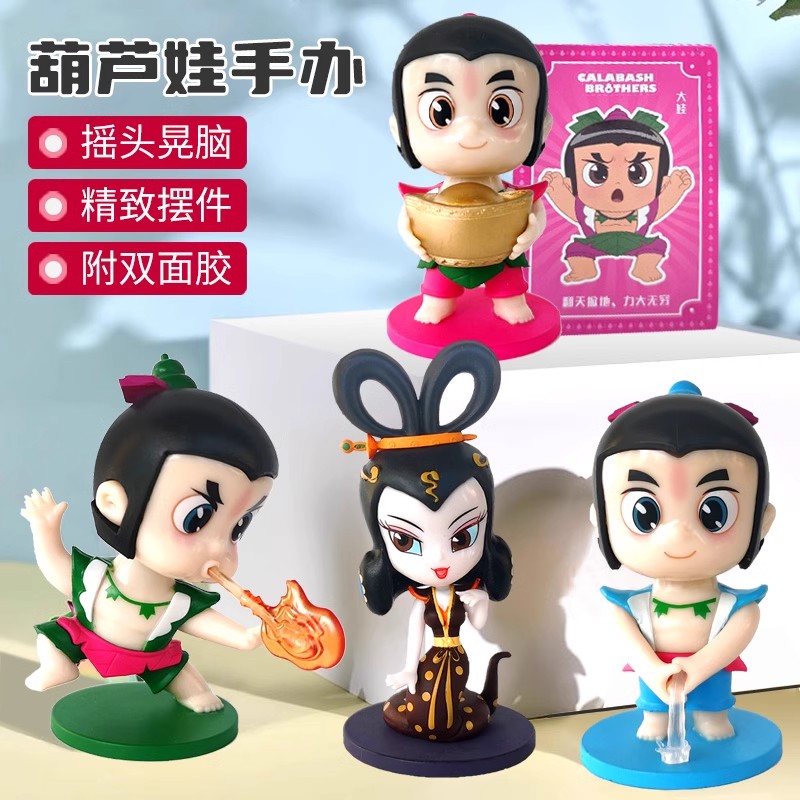 正版葫芦娃手办儿童玩具摆件金刚葫芦兄弟玩偶全套汽车载摇头公仔