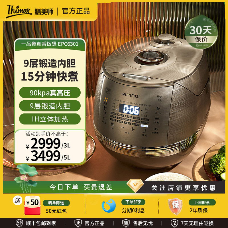 Thimax/膳美师 EPC6301真香煲水光煲1.9倍真高压力电饭煲锅IH家用