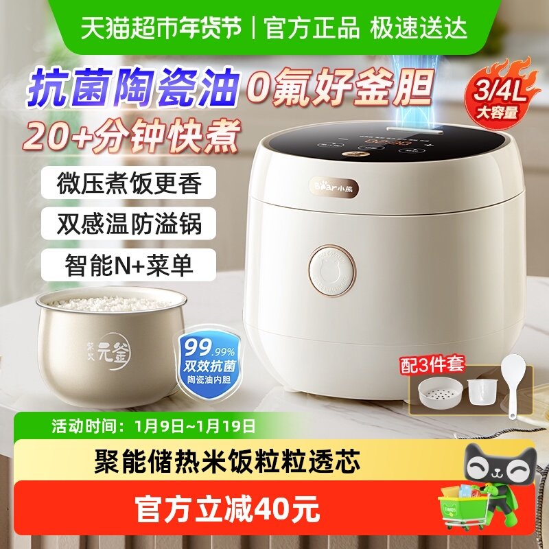 小熊微压力电饭煲家用小型智能3到4-5人陶瓷油快煮饭电饭锅烹饪机