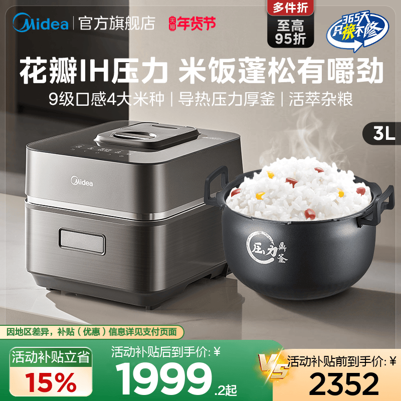 美的花瓣IH压力电饭煲家用3升小型多功能智能语音预约2025新款G3