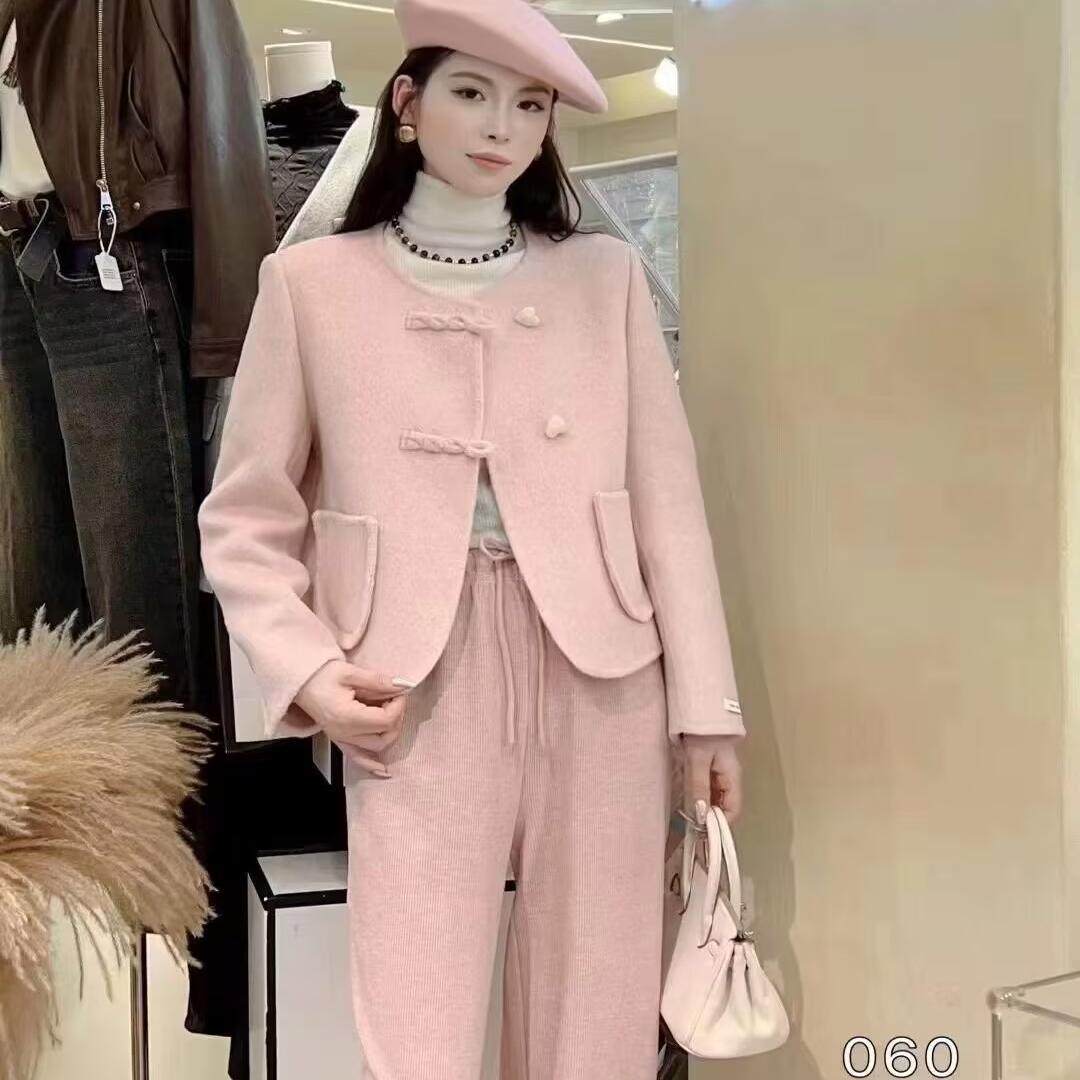 2025新中式百搭双面羊绒大衣女士国风短款小个子圆领显瘦毛呢外套