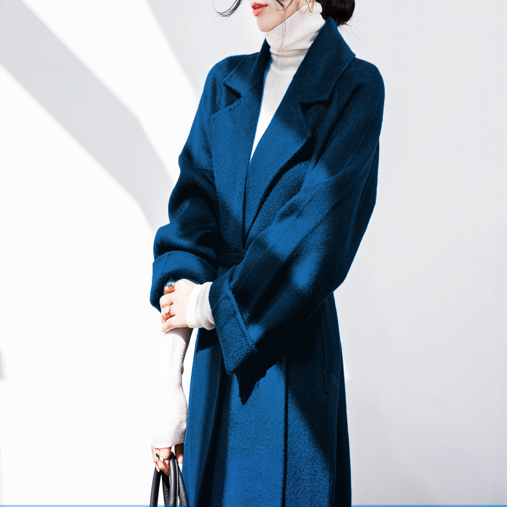 之和大衣高级感蓝色加厚慵懒风睡袍双面羊绒羊毛呢大衣女毛呢外套