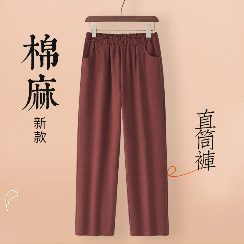 新款女士裤子休闲裤棉麻唐装长裤中国风松紧腰宽松阔腿高腰直筒裤