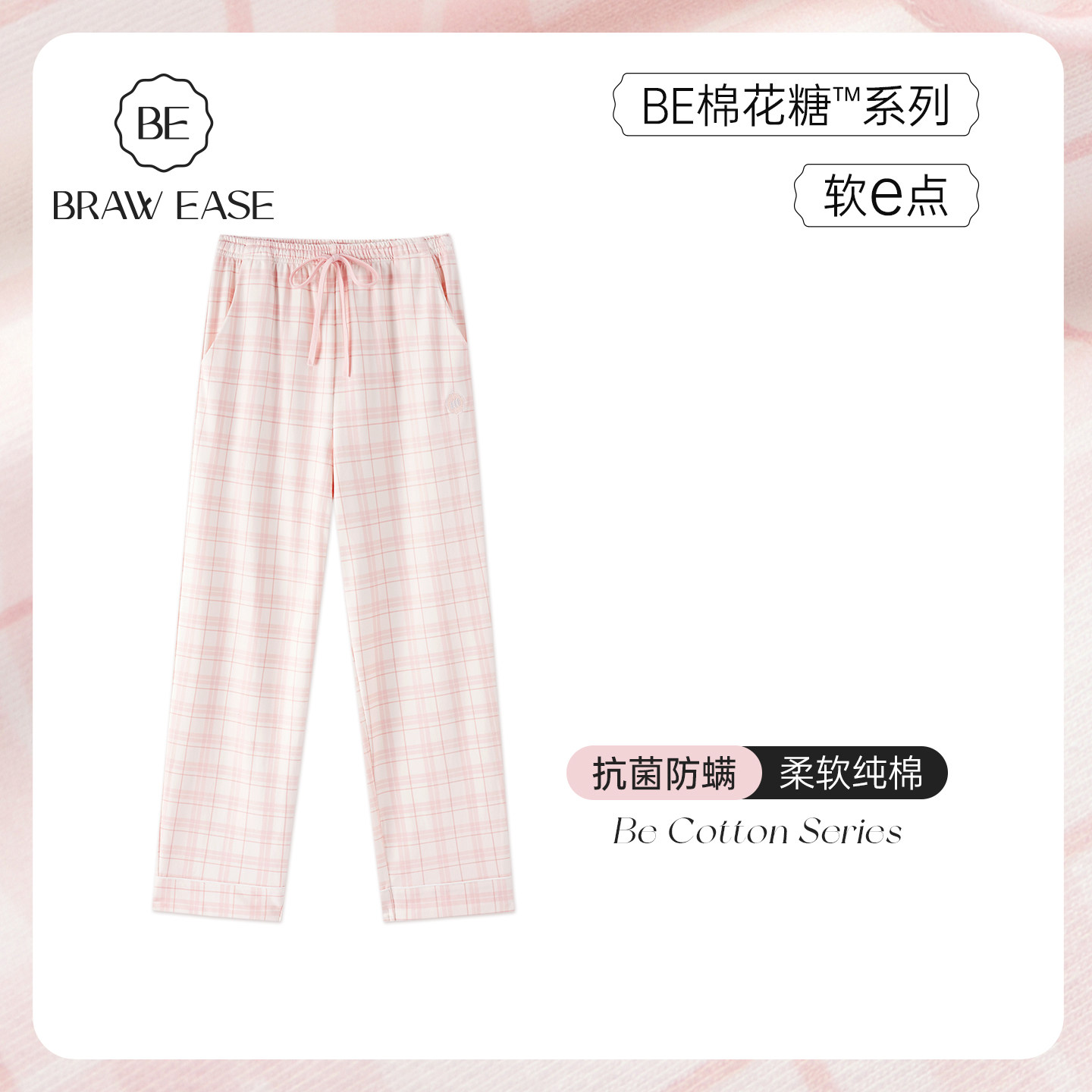 纯棉睡裤女长裤秋春格子家居粉色可外穿遛弯裤夏季女士裤子休闲裤