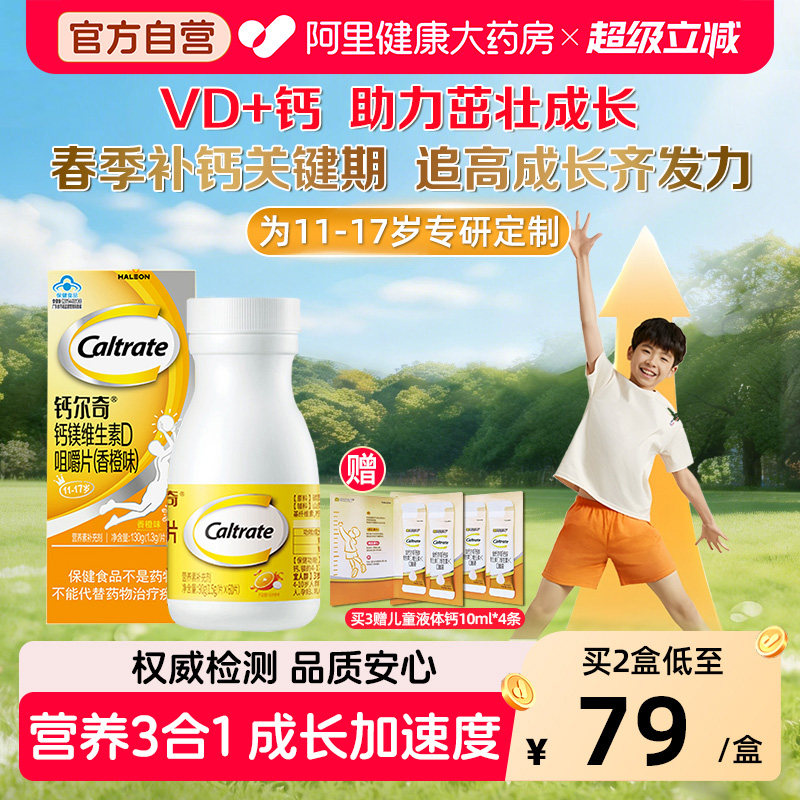 钙尔奇青少年镁维生素D咀嚼片儿童补钙11-17岁学生钙片官方正品