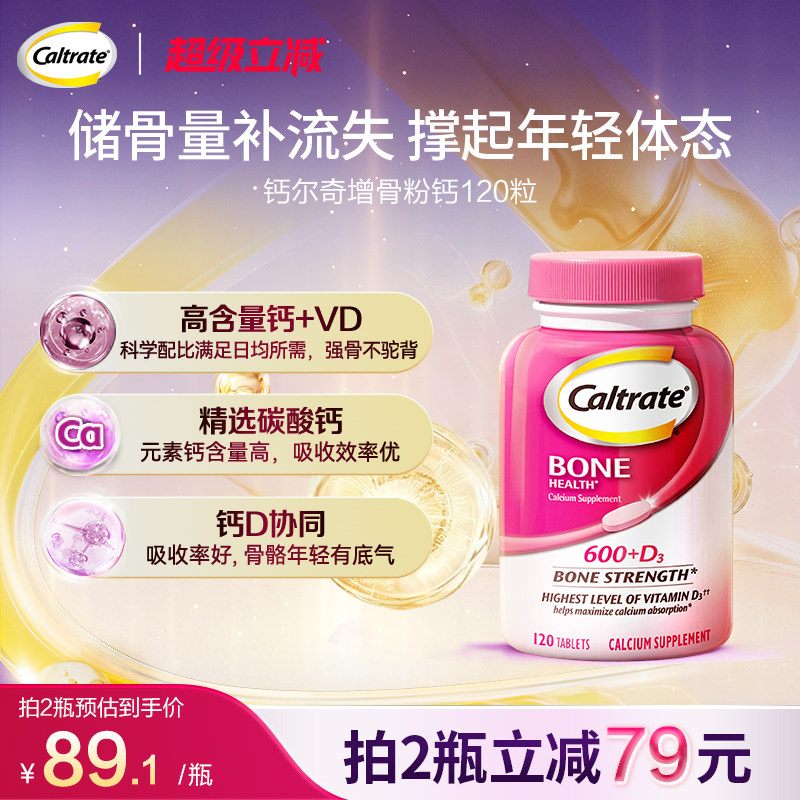 钙尔奇美国进口海外钙片中老年紫钙120粒/青少年粉钙120粒