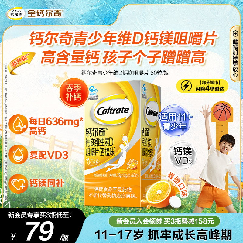 钙尔奇钙镁维生素D咀嚼片11-17岁青少年儿童学生长高官方正品60片