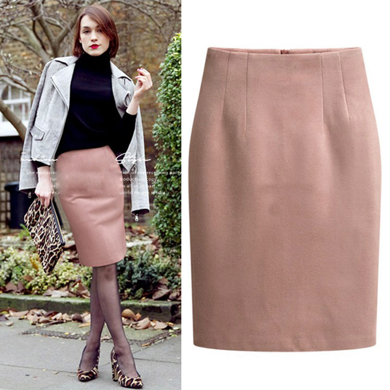 芬展毛呢半身裙秋冬新品高腰修身大码包臀裙加厚弹力中长款包裙冬