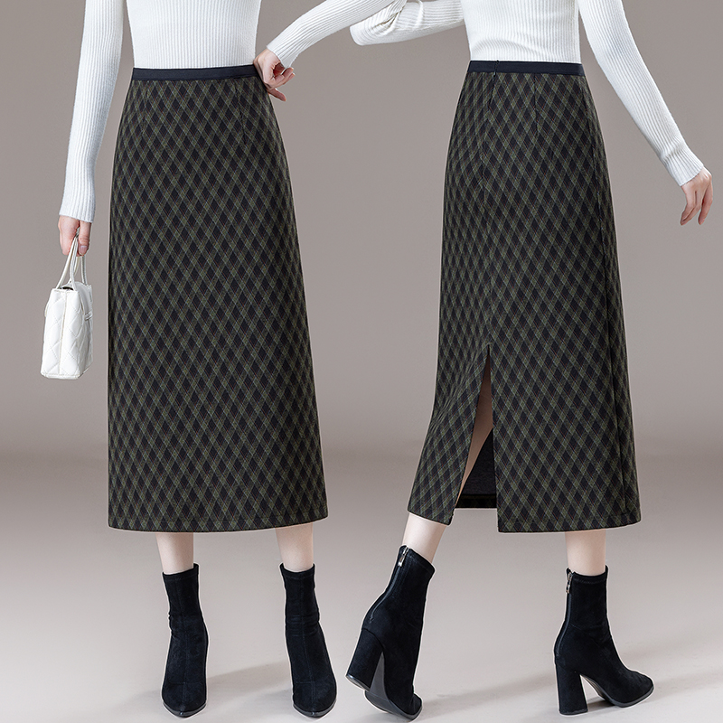 秋冬包裙格子短裙毛呢半身裙女包臀裙中长款高腰一步裙加厚格裙子
