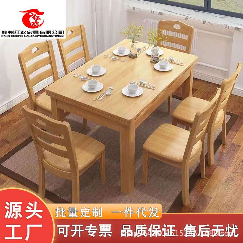 - 实木餐桌椅组合可伸缩