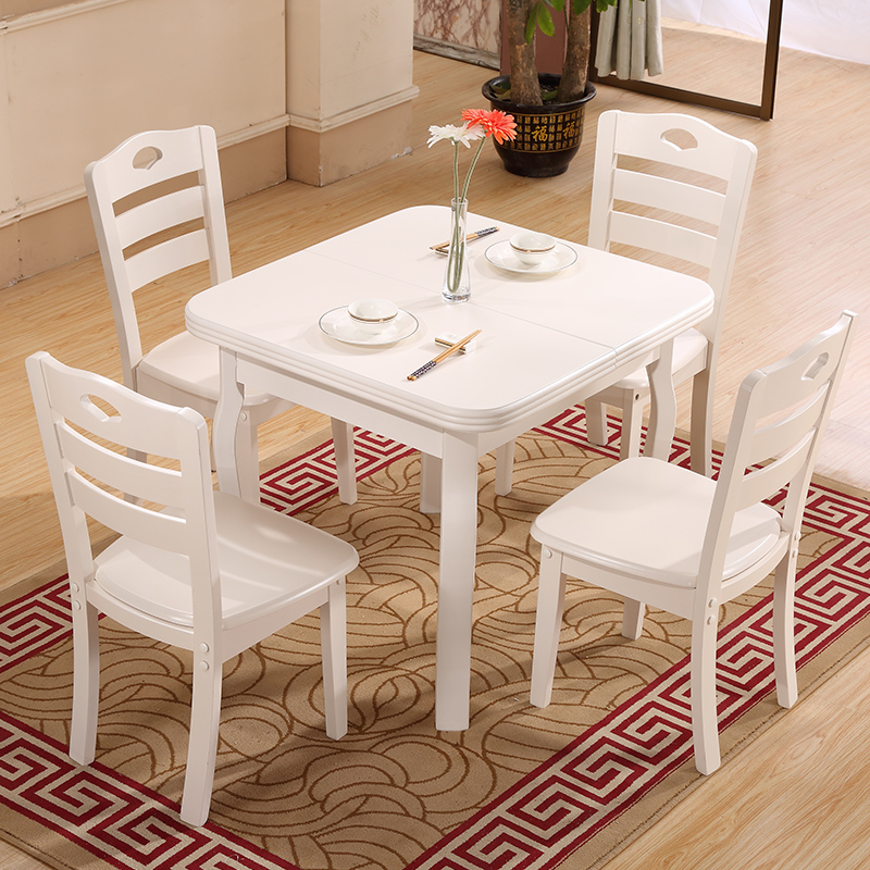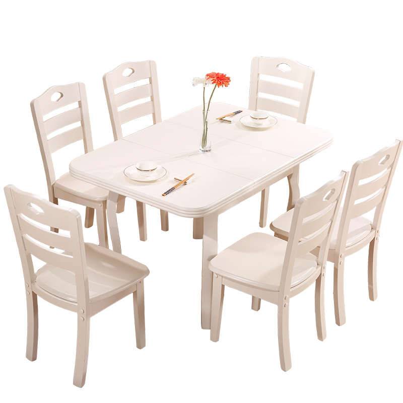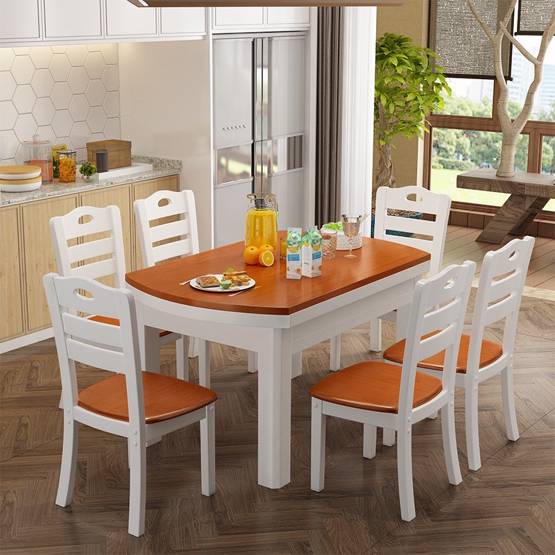 - 实木可伸缩餐桌椅组合
