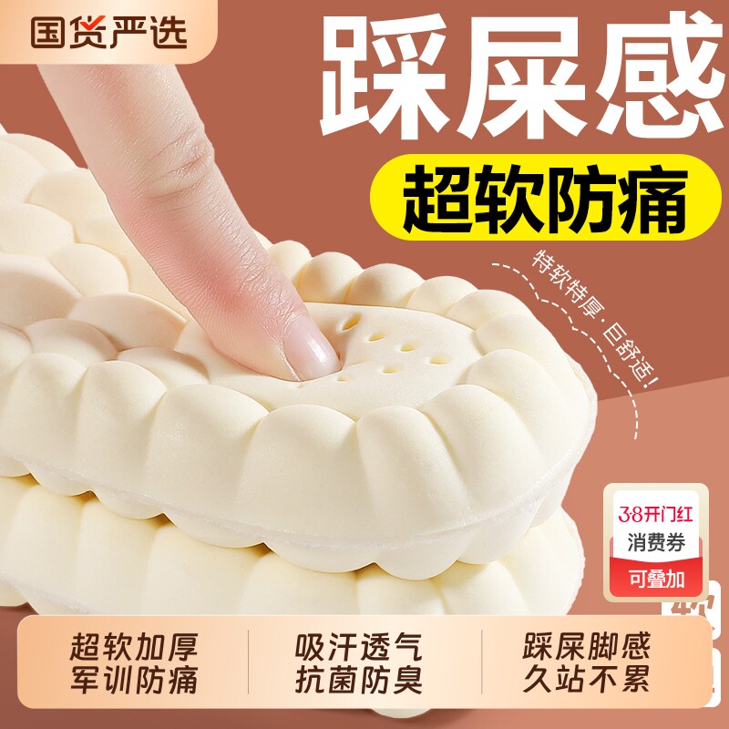 踩屎感鞋垫久站不累软底夏季足弓支撑运动气垫减震吸汗防臭男女款