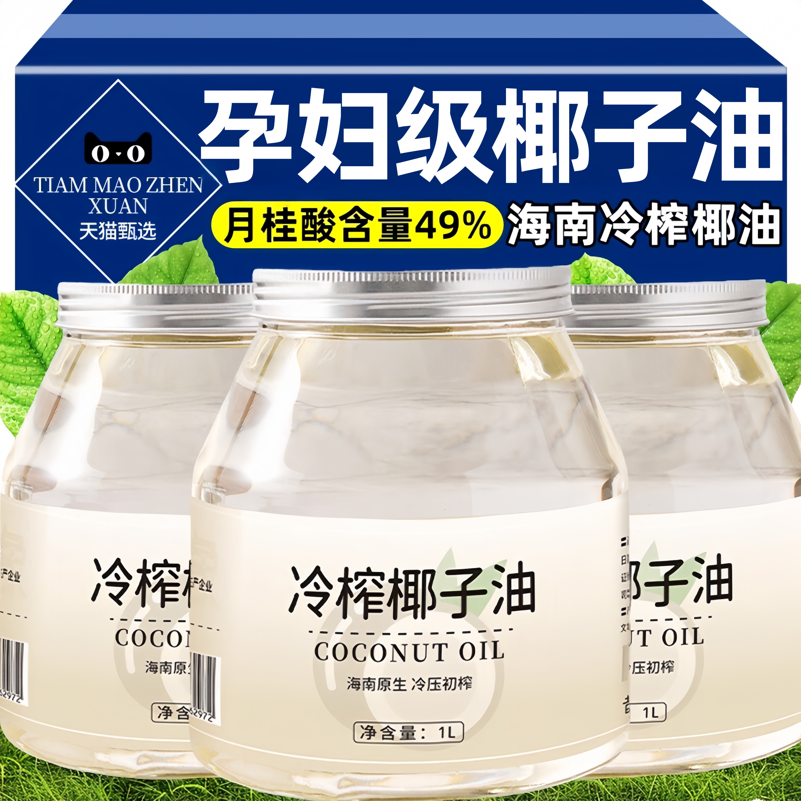椰子油冷榨护发护肤身体乳1000ml食用海南初榨椰油卸妆烘培mct