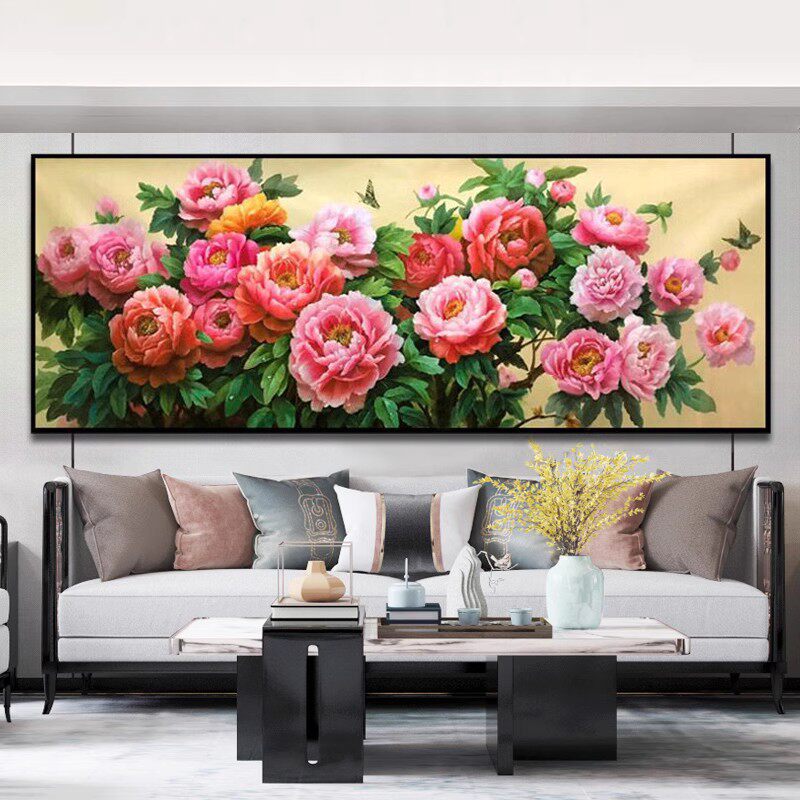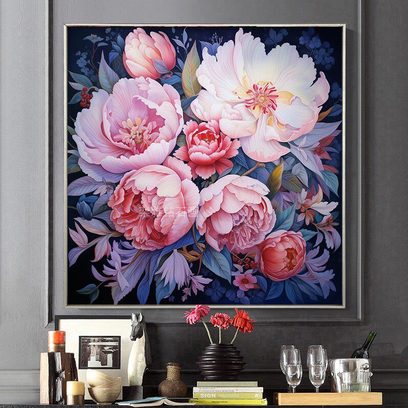 5d玄关牡丹钻石画满钻2026新款客厅粘钻石贴十字绣花开富贵