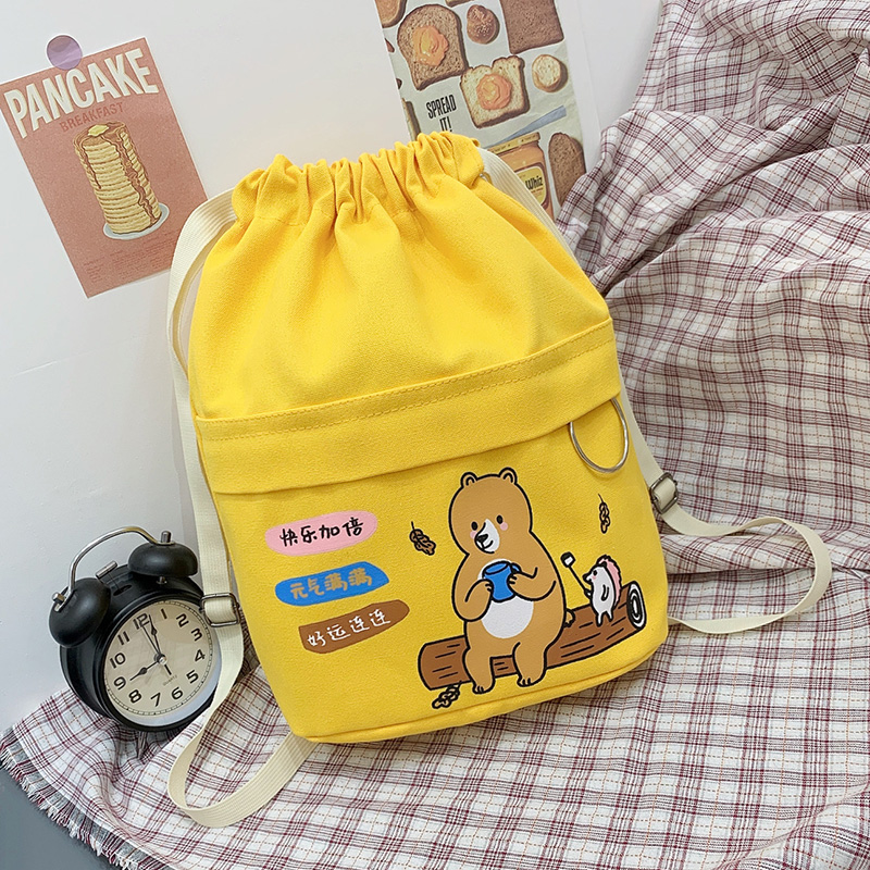韩版帆布双肩包女潮原宿风学生书包森系抽绳休闲包百搭个性旅行包