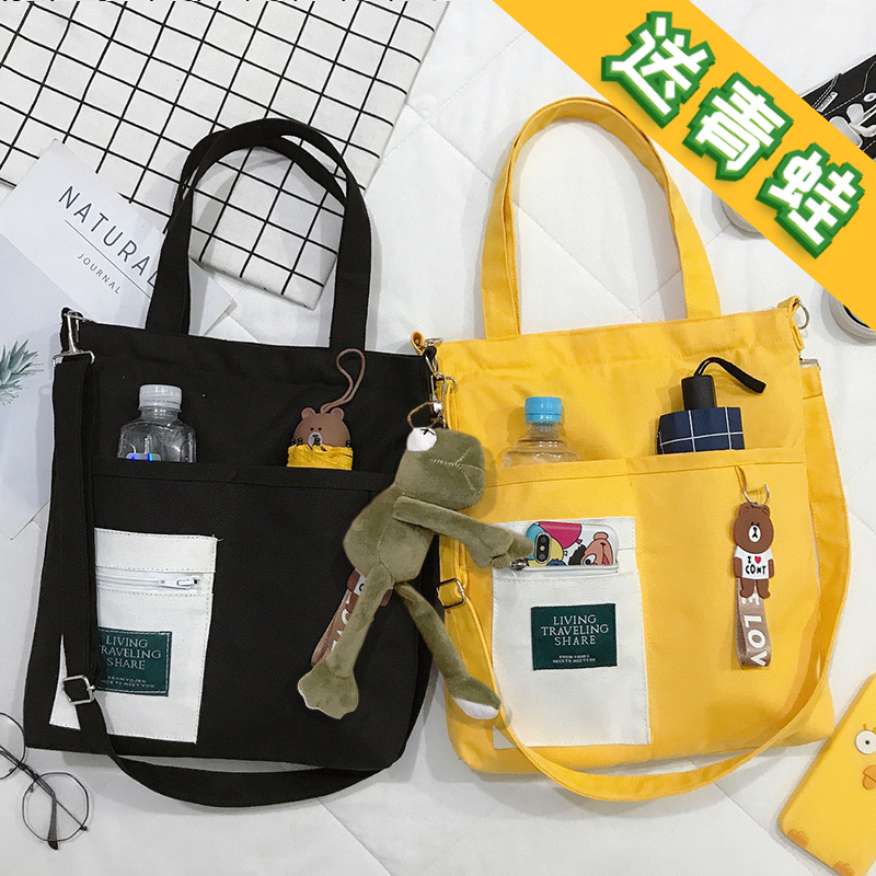 新款潮帆布包韩版女文艺休闲单肩包简约百搭手提包袋原宿学生书包