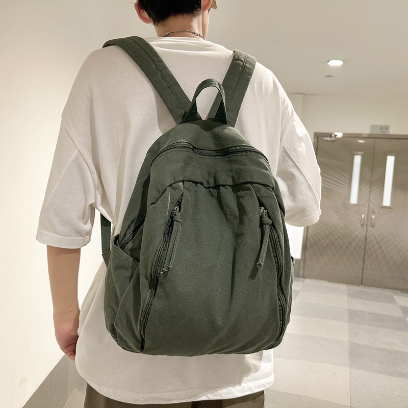大学生休闲ins帆布书包女 韩版高中纯色百搭背包潮男古着感双肩包