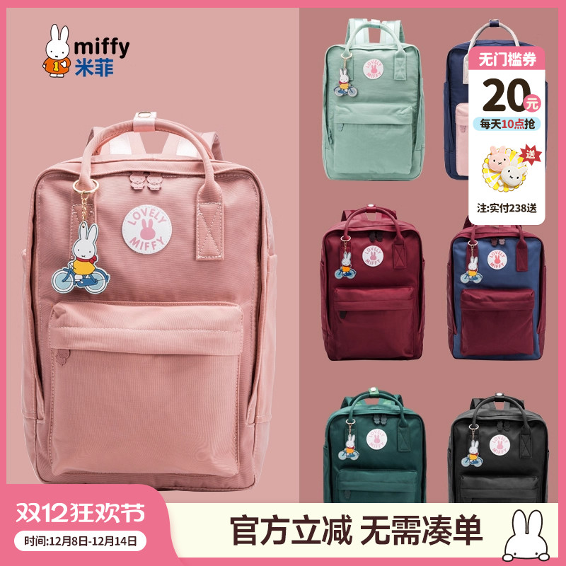 米菲双肩包女2025新款韩版潮时尚大容量纯色学生书包帆布小背包