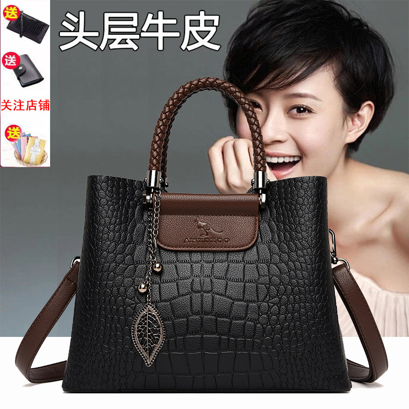 真皮女包鳄鱼纹牛皮包手提包时尚女士大包新款妈妈通勤单肩斜挎包
