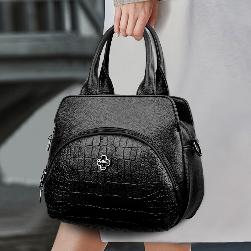 新款真皮女包时尚简约鳄鱼纹女士手提包软皮包单肩斜挎包中年皮包