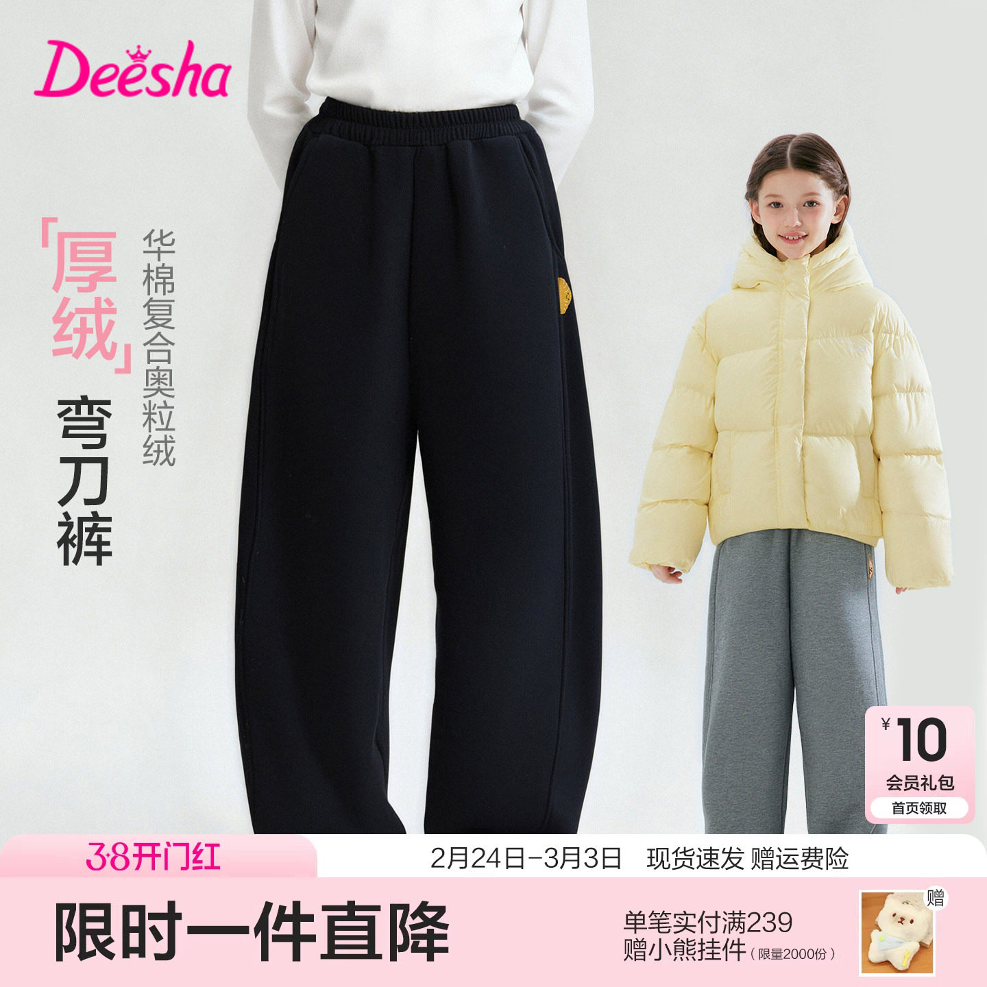 笛莎官方旗舰童装女童加绒弯刀裤冬季裤子新款女孩儿童保暖运动裤
