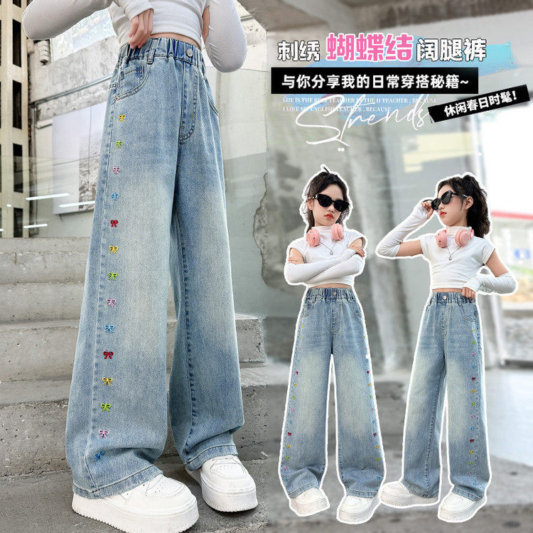 女大童牛仔裤春秋2026新款儿童阔腿裤初中生青少年女孩裤子巨好看