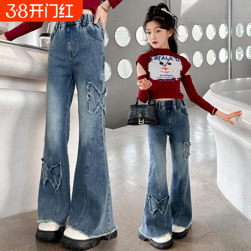 女童喇叭裤春秋款2025新款牛仔裤儿童洋气中大童女孩裤子早秋时髦