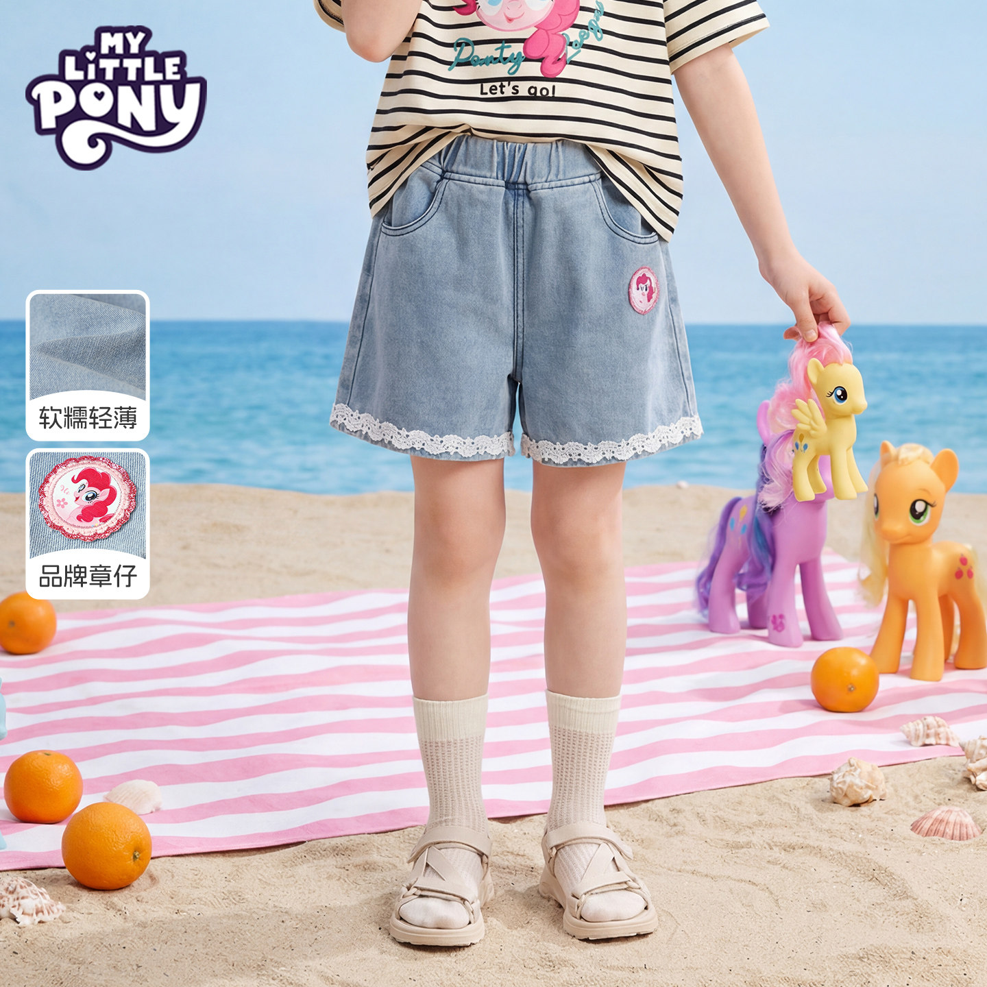 小马宝莉女童牛仔短裤夏季新款2026百搭中大儿童运动裤小女孩裤子