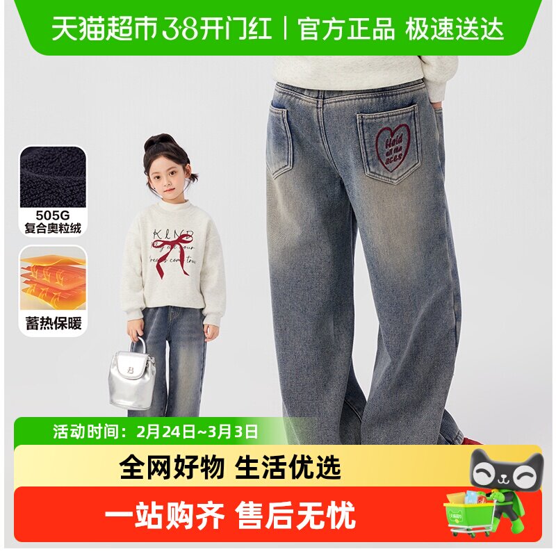 米多多好物优选888女童加绒牛仔裤冬季女孩裤子中大童直筒宽裤