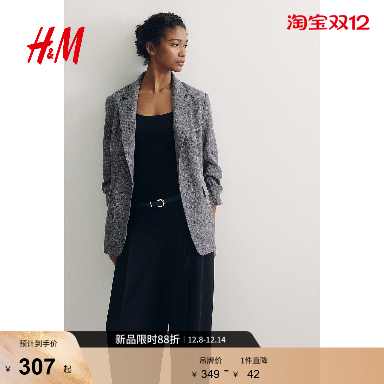 HM女装西装2025秋季新款商务职场正装通勤风褶袖西服外套1124589