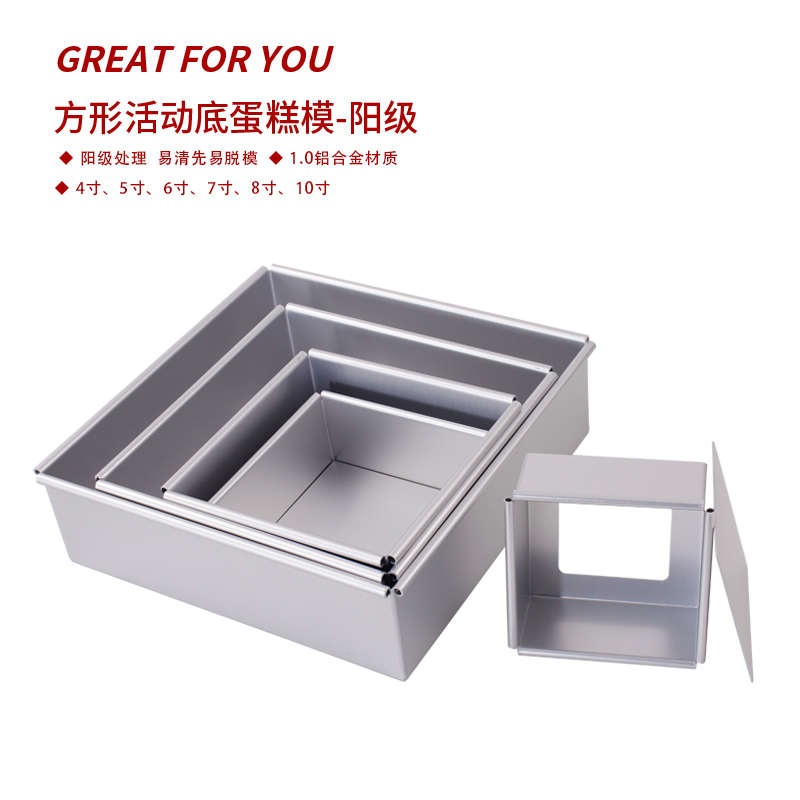 方形家用蛋糕模具4/5/6/8/10寸活动底加深高戚风蛋糕阳极烤盘