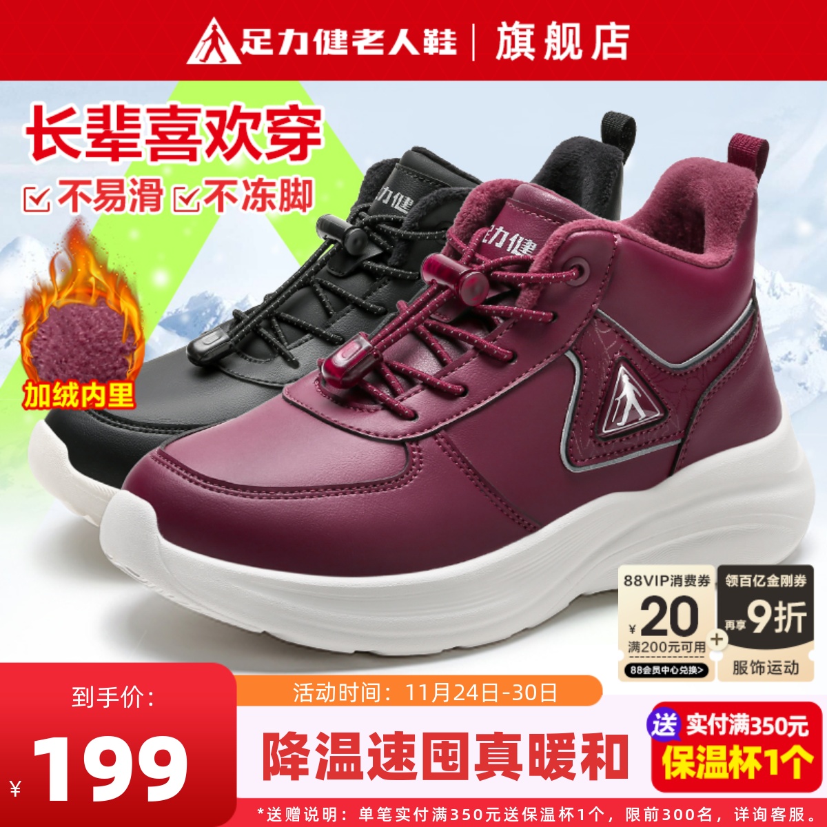 足力健老人鞋官方旗舰店冬中老年妈妈鞋女加绒加厚棉鞋运动保暖鞋