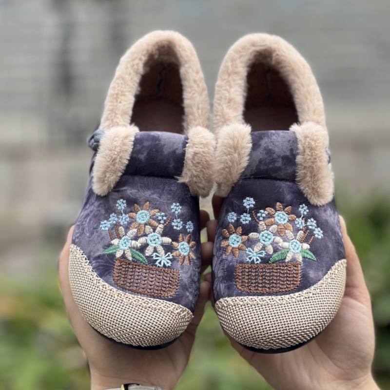 老北京布鞋新款加绒加厚中老年棉鞋妈妈鞋中式绣花汉服鞋一脚蹬女