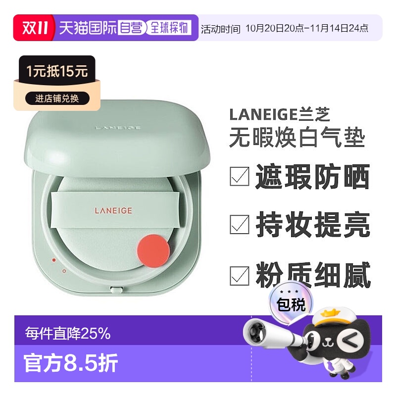 香港直邮LANEIGE兰芝无暇焕白气垫绿色粉色遮瑕防晒持妆提亮正品