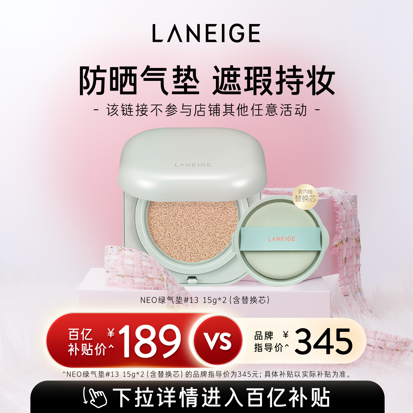 韩国直邮LANEIGE 兰芝 新颜无瑕气垫霜 绿色13号持久不脱妆正品