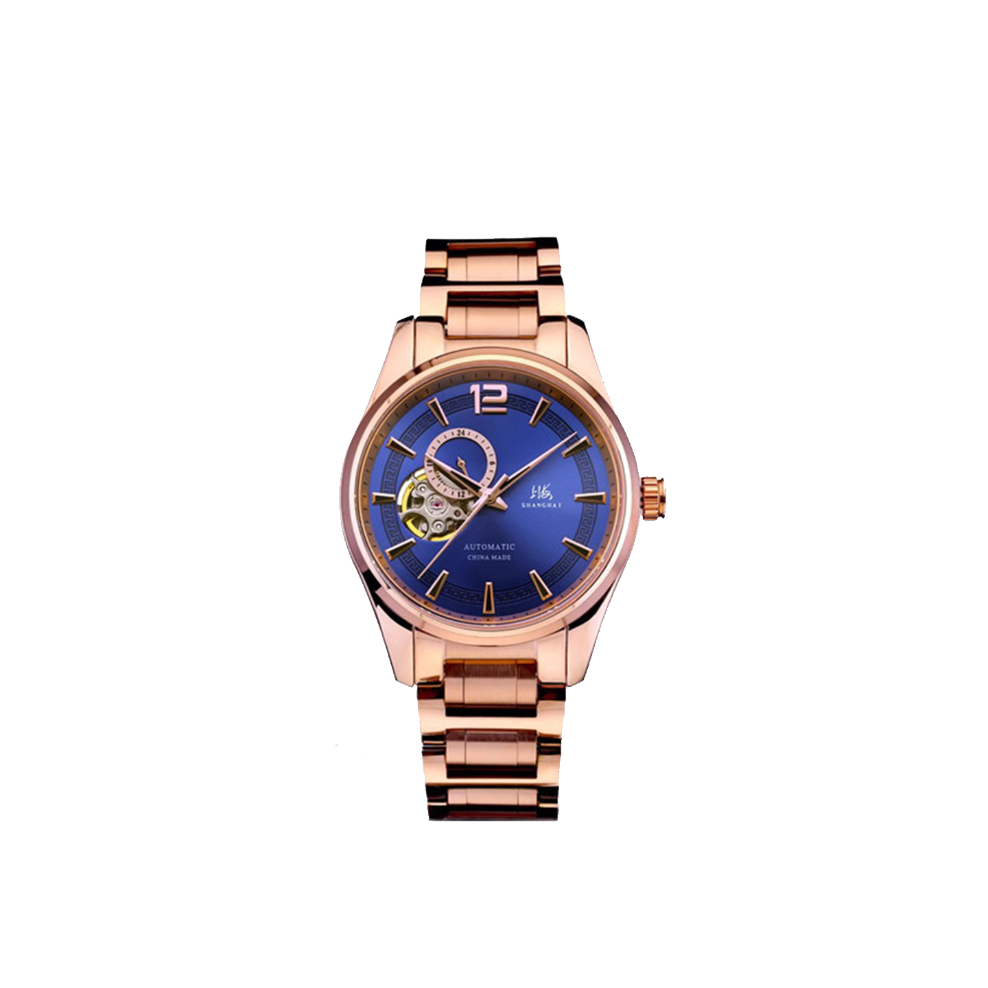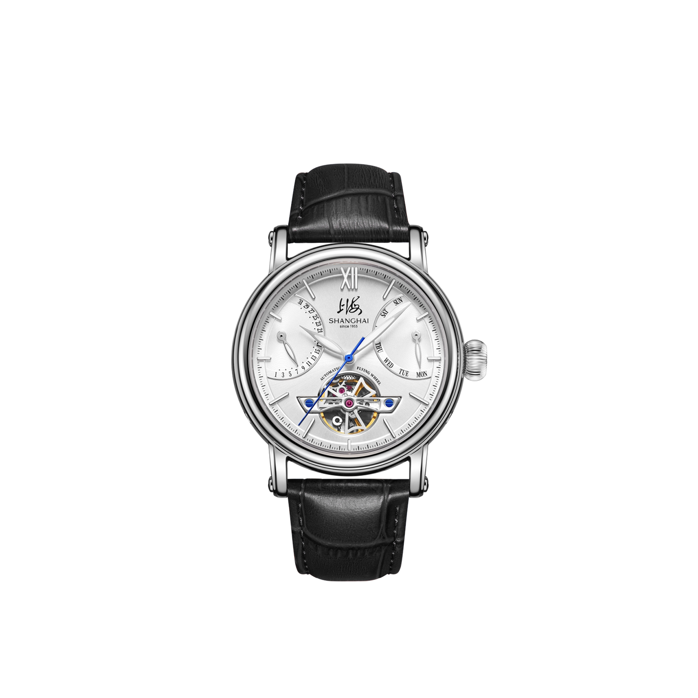 上海手表42毫米露摆系列镂空飞轮透底夜光男士自动机械腕表924