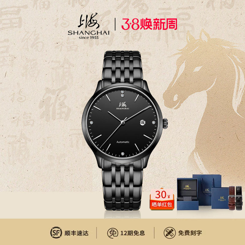 上海手表男官方旗舰店简约防水自动机械表钻石表情侣国产腕表3070