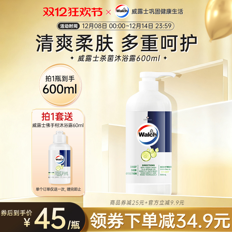 威露士杀菌佛手柑沐浴露600ml健康滋润保湿深层清洁净肤持久留香