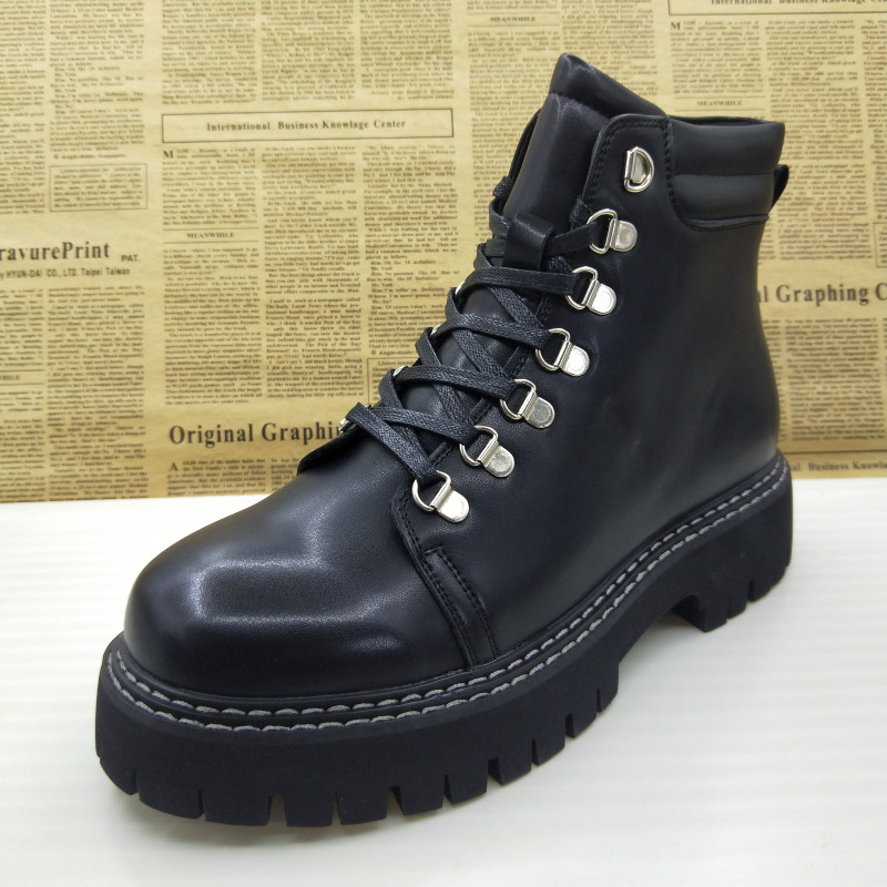皮靴男厚底时尚秋冬马丁靴系带潮流个性男靴复古短靴青年机车靴子