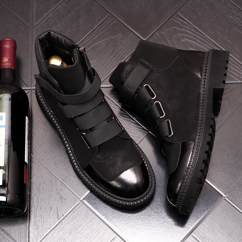 2025春季新款高帮鞋男士个性拉链马丁靴鞋青年时尚潮流休闲烫钻鞋